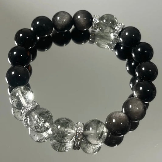 Green Phantom and Silver Obsidian Crystal Bracelet
