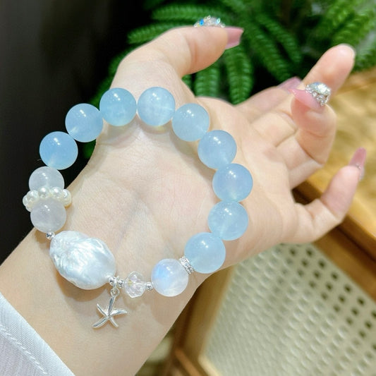 Grey Moonstone Blue Tiger's Eye Pure Silver Bracelet
