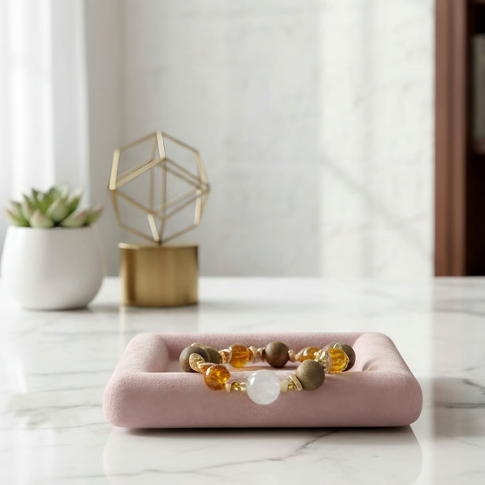 - Materials: Amber, Phantom Quartz, Agarwood (Green Qinan), Gold-tone hardware