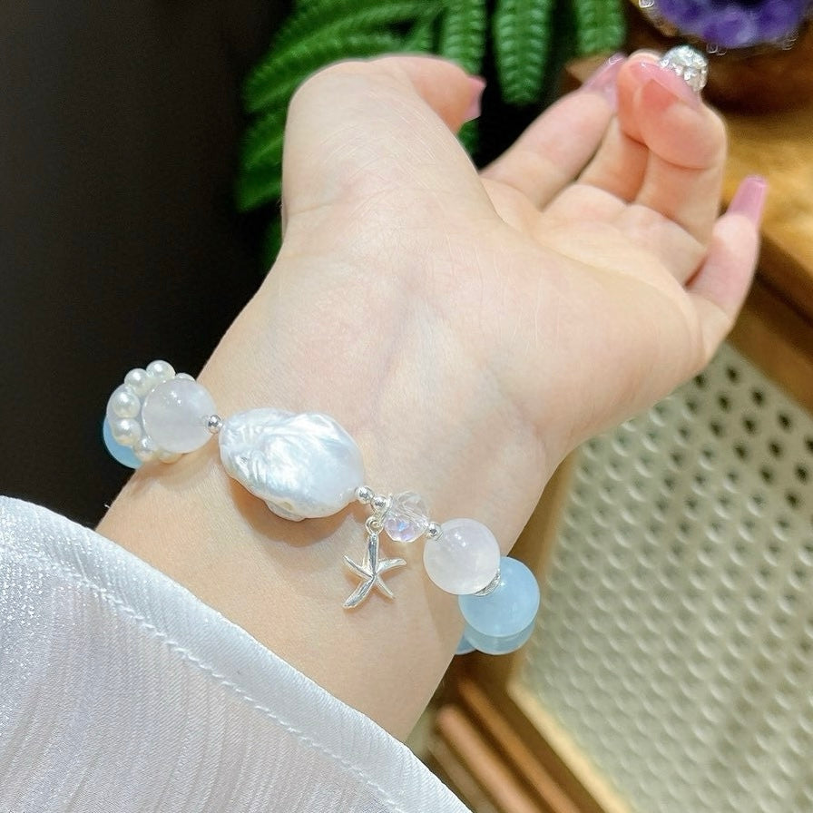 - Material: Aquamarine, Blue Moonstone, Baroque Pearl, Sterling Silver Star
