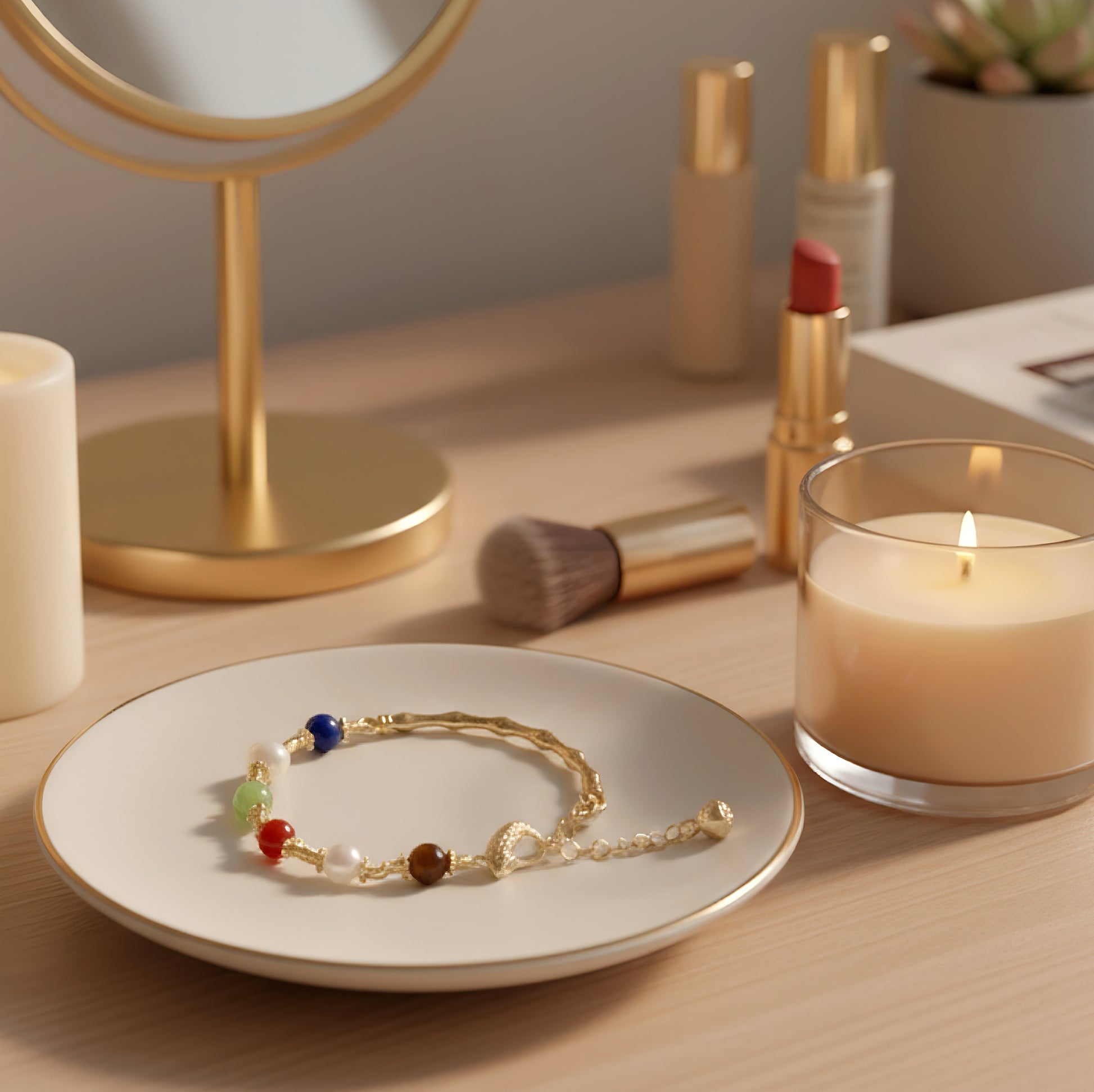 - Gemstones: Tiger’s eye, gold jade, red agate, xiuyu jade, freshwater pearls, lapis lazuli